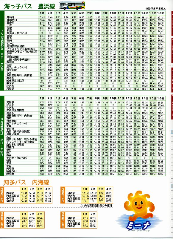 ・下り(師崎港行)5便で、内海駅を10:17分発→師崎港駅10:49分着のものと、